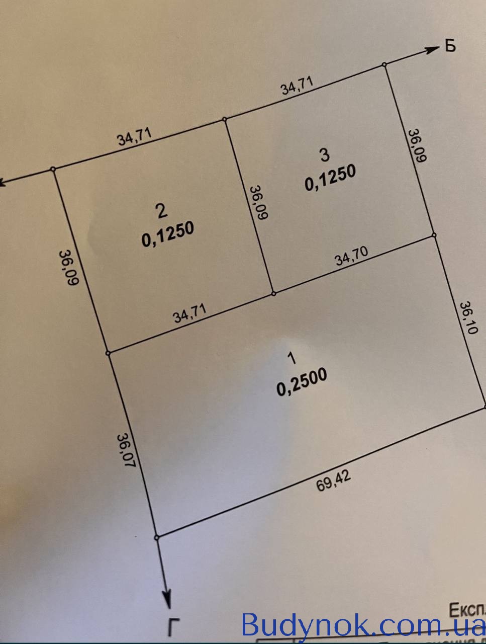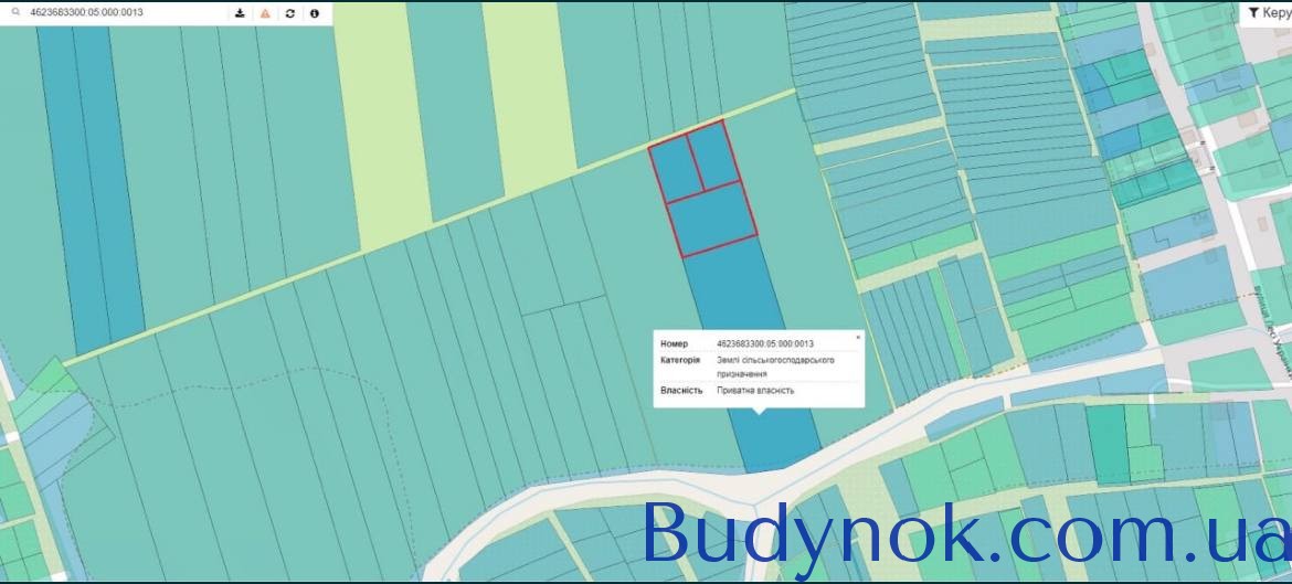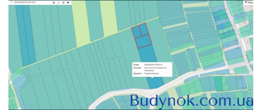 Ділянка площею 50 соток, поділена на 3 окремі ділянки: 25 соток, 12.5 соток та 12.5 соток.